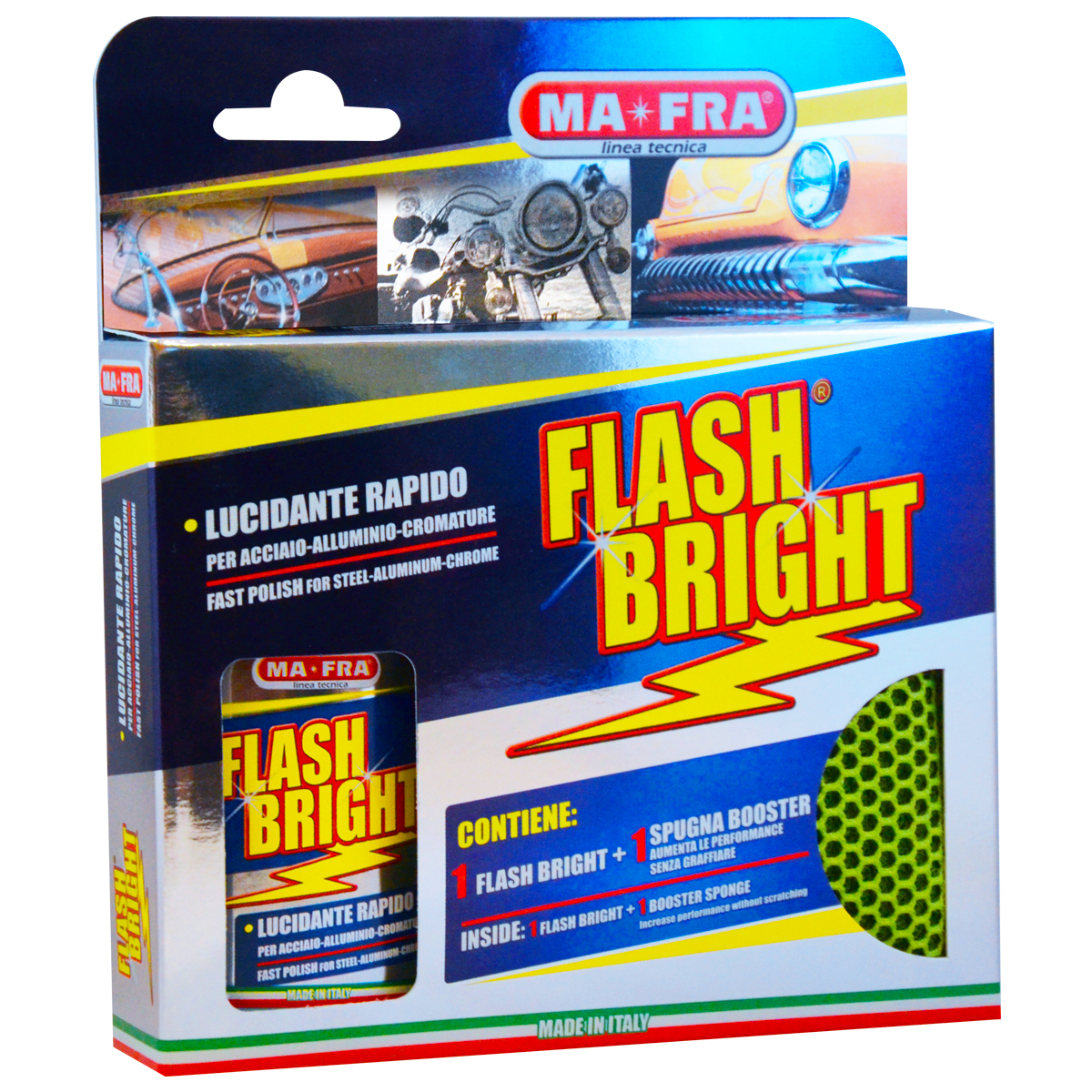 Issu de la Ligne Technique MA-FRA, FLASH BRIGHT est le nouveau polish lustrant rapide pour surfaces de carrosserie en chrome, acier, laiton et alliage.